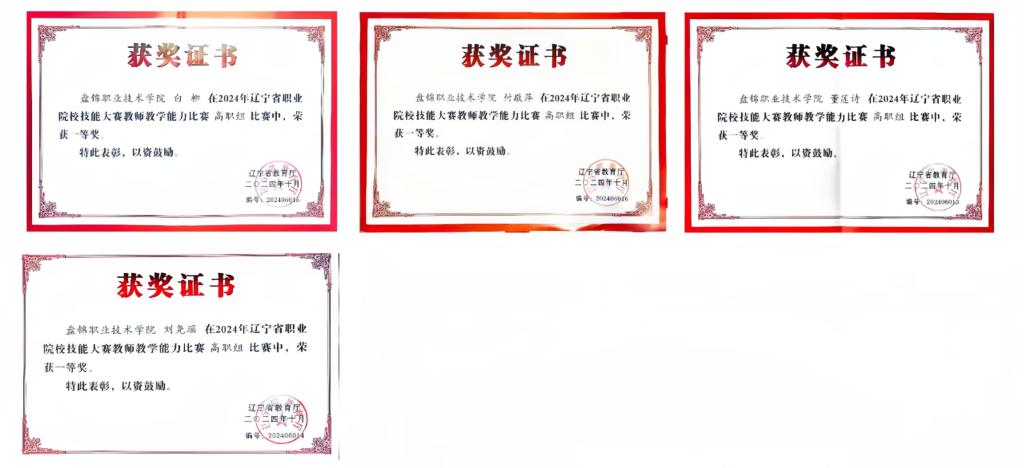 一、2024年白柳、付敬萍、董诗莲、刘尧瑶获辽宁省职业院校技能大赛教师教学能力比赛一等奖。
